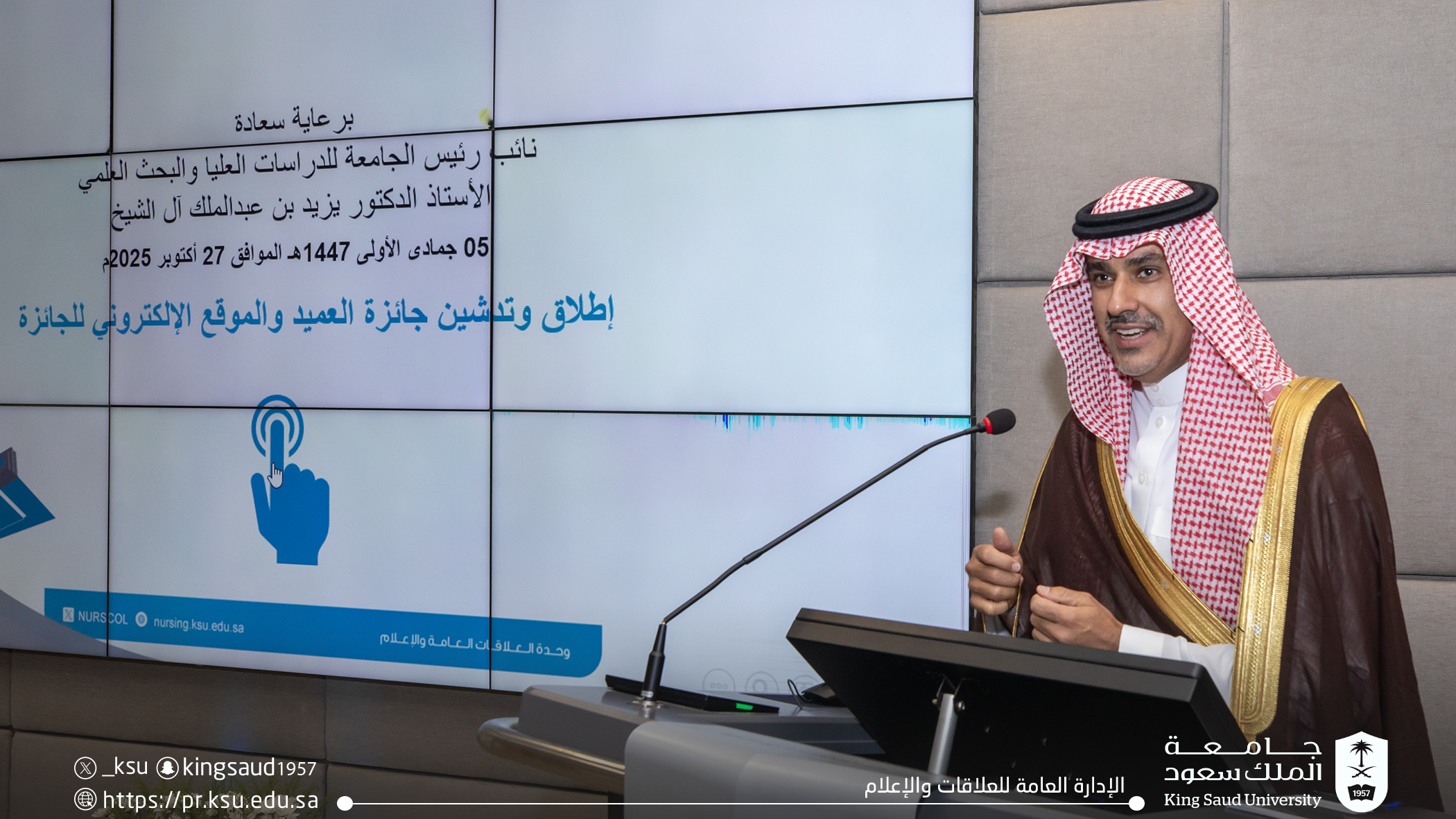 برعاية سعادة نائب رئيس جامعة الملك سعود للدراسات العليا والبحث العلمي الأستاذ الدكتور يزيد بن عبدالملك آل الشيخ، أطلقت كلية التمريض "جائزة العميد للتميز والابتكار"، وذلك في حفل أقيم بمقر الكلية بحضور عميد ووكلاء الكلية ورؤساء الأقسام وأعضاء هيئة التدريس والإداريين وطلاب الكلية.