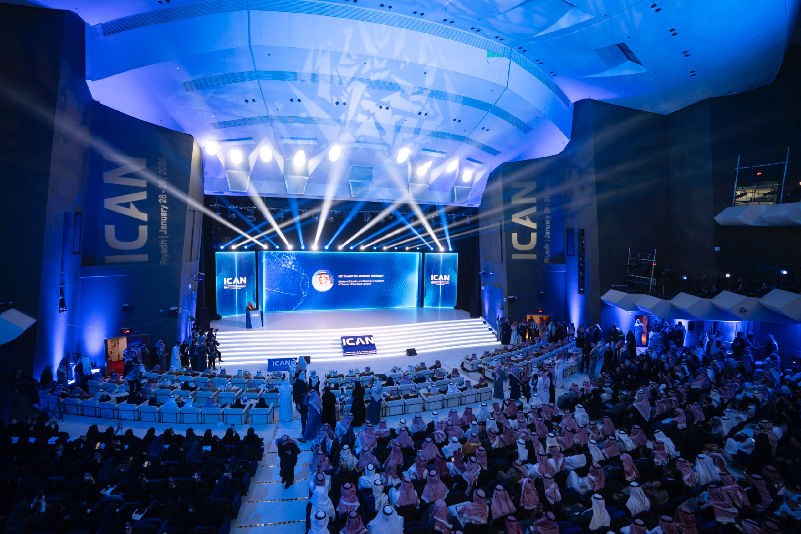 وأشار معاليه إلى أن مؤتمر (ICAN 2026) منصة عالمية تجيب عن سؤال جوهري يتمثل في كيفية بناء قدرات مستدامة مستعدة للمستقبل المرتبط بالبيانات والذكاء الاصطناعي، من خلال مناقشة ثلاثة محاور رئيسة : بناء القدرات الوطنية في مجالي البيانات والذكاء الاصطناعي، وإعادة تصور التعليم في ضوء البيانات والذكاء الاصطناعي، وإعداد القوى العاملة لاقتصاد تقوده تقنيات الذكاء الاصطناعي. وأفاد أن قطاع التعليم ينطلق من إيمان راسخ بأن الذكاء الاصطناعي ليس بديلًا عن القدرات البشرية، بل معززًا لها ومضاعفًا لأثرها، وأن المسؤولية لا تقتصر على تسريع تبنّي التقنيات، بل تشمل تصميم أنظمة تمكّن الإنسان وتحافظ على مهاراته وتضمن بقاءه في موقع اتخاذ القرار، داعيًا إلى جعل مؤتمر (ICAN) علامة فارقة بما يفضي إليه من شراكات، وما يطلقه من قدرات، وما يؤسسه من مسارات تمتد من التعلّم إلى القيادة، لتشكيل مستقبل تُسخّر فيه البيانات والذكاء الاصطناعي لخدمة الإنسان، وتتسع فيه دائرة الفرص، وتغدو فيه القدرات المعيار الحقيقي للتقدم.