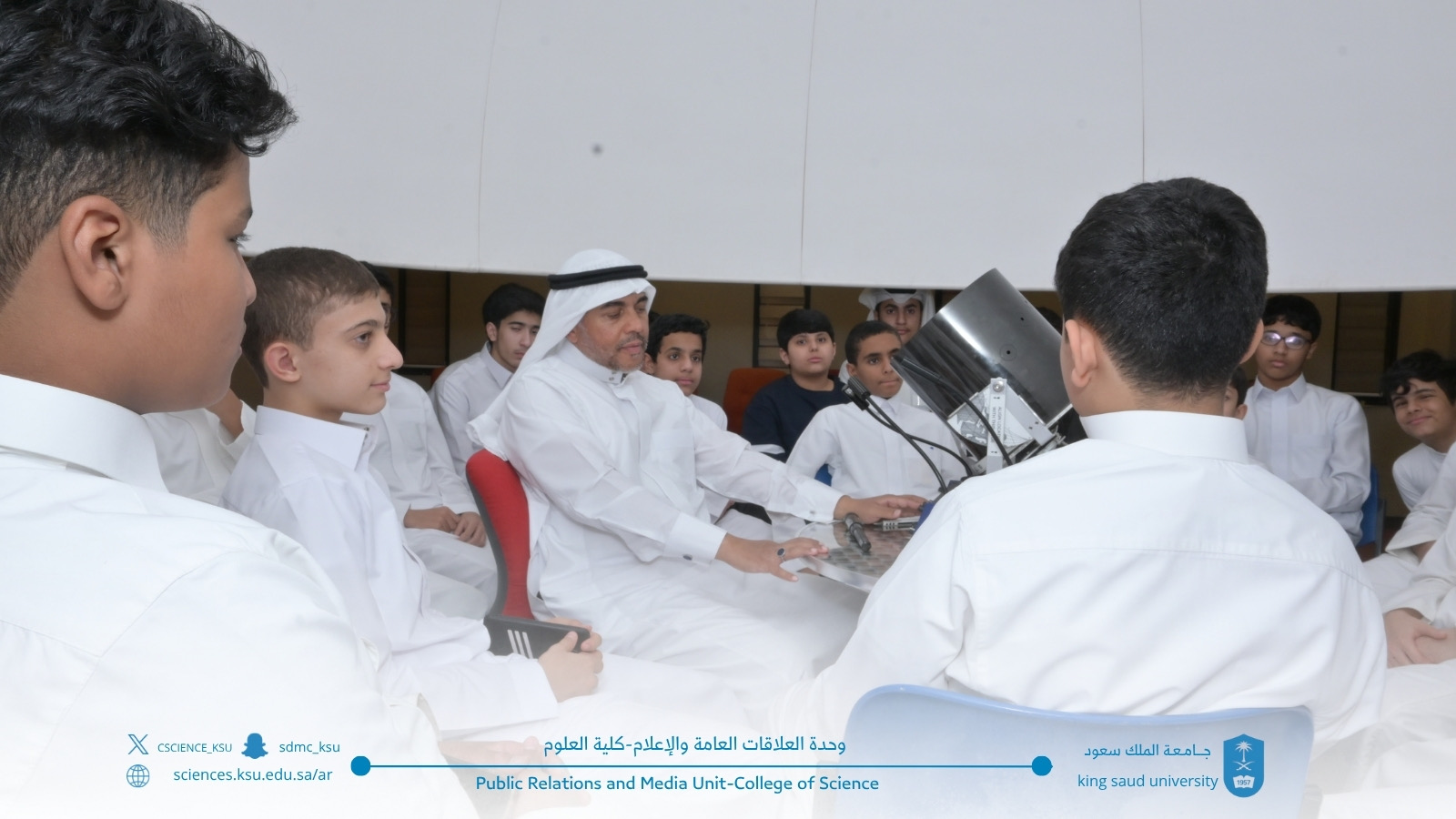 بالتزامن مع ⁧‫أسبوع الفضاء العالمي ‬⁩6/10/2025 ، استقبلت ⁧‫كلية العلوم‬⁩ ممثلة بقسم الفيزياء والفلك مجموعة من طلاب مدارس التعليم العام للاحتفاء بأسبوع الفضاء العالمي‬⁩ حيث شمل البرنامج زيارات علمية إلى القبة الفلكية والمتحف الفلكي والمرصد الشمسي،إضافة إلى محاضرات لاثراء الطلاب نحو استكشاف اسرار الفضاء الواسع.