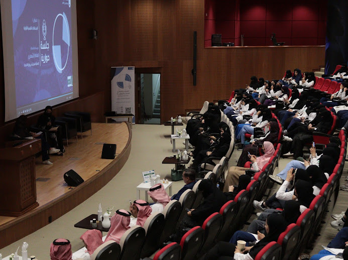 ثم ألقت سعادة وكيلة الكلية لشؤون الطالبات أ.د. منال فهيد الحربي كلمة أكدت فيها على حرص الكلية على تبنّي مبادرات نوعية تدعم الصحة النفسية وتواكب مستهدفات رؤية المملكة 2030 في تعزيز جودة الحياة.