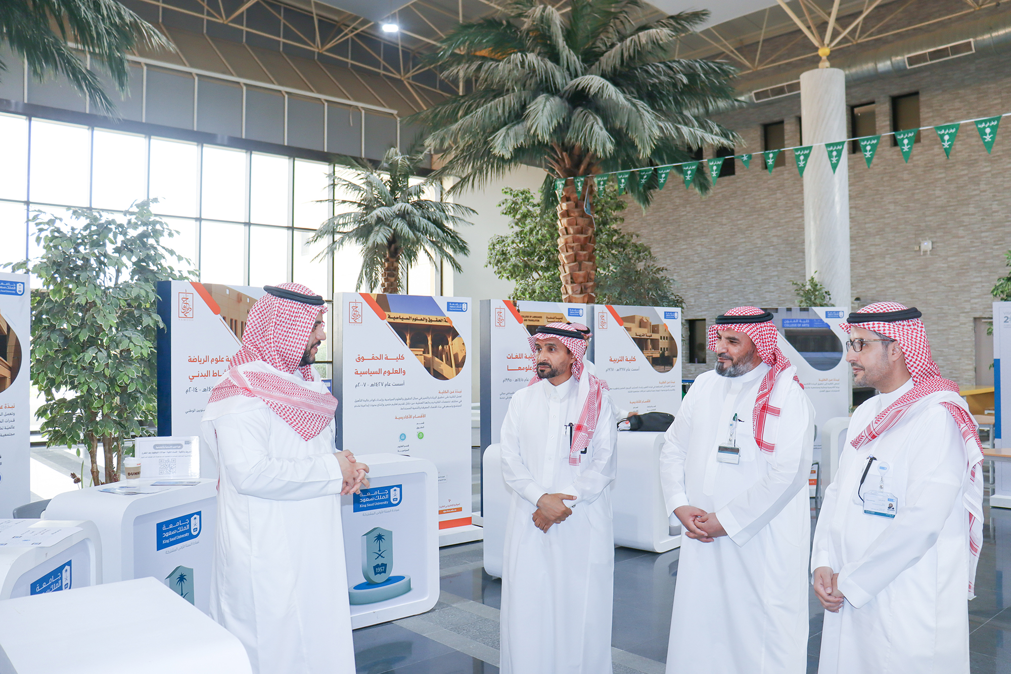 وكان في استقباله كلٌّ من سعادة عميد السنة الأولى المشتركة د. محمد بن هندي الغامدي وسعادة وكيل العمادة لشؤون الطلاب د. مخلد بن مطيران العنزي. حيث اطلع سعادته خلال الزيارة على مشاركة كلية التمريض في المعرض، وما تضمنه الركن من عرضٍ تعريفي حول برامج الكلية الأكاديمية وآفاق التمريض المهنية في سوق العمل.