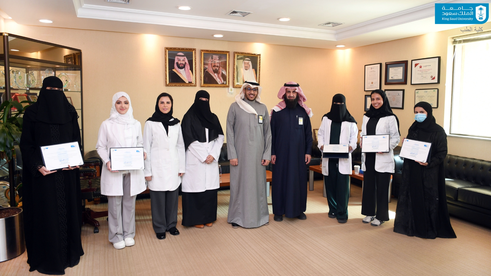 كرّم عميد كلية الطب الدكتور بندر بن ناصر الجفن، الطلاب والطالبات سنة الإمتياز الفائزين بـقائمة العميد للعام الأكاديمي 2025/2026م، وذلك تقديرًا لتفوقهم الأكاديمي وتميّزهم في الأنشطة الطلابية والبحثية والمجتمعية، في مبادرة تُجسّد حرص الكلية على دعم ثقافة التميّز والتحفيز على الإبداع والريادة بين طلاّبها وطالباتها بحضور وكيل الكلية للدراسات العليا والبحث العلمي أ.د. عاصم الفدّا، ووكيلة الكلية للشؤون التعليمية أ.د. منى بنت محمد سليمان، ووكيلة الكلية لشؤون الطالبات الدكتورة هناء البليهي. وشملتْ القائمة الطالب عبد الله سعود الدغيثر، خالد محمد الحمدي، عبد الرحمن يوسف الهميلي، عبد الملك عبد العزيز الدريبي، سالم منصور أبو خنجر، علي علاء بصفر، عبد الله سعد ال إبراهيم، خالد عبد الرحمن الغامدي، والطالبة ريناد مساعد الحسين، لين سليمان الهدلق، آلاء إبراهيم المعجل، شهد عبد الحميد المقبل، سارة عبد العزيز الهملان، وسارة أديب الحميضي.