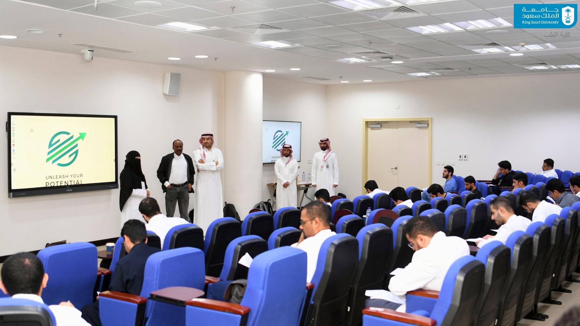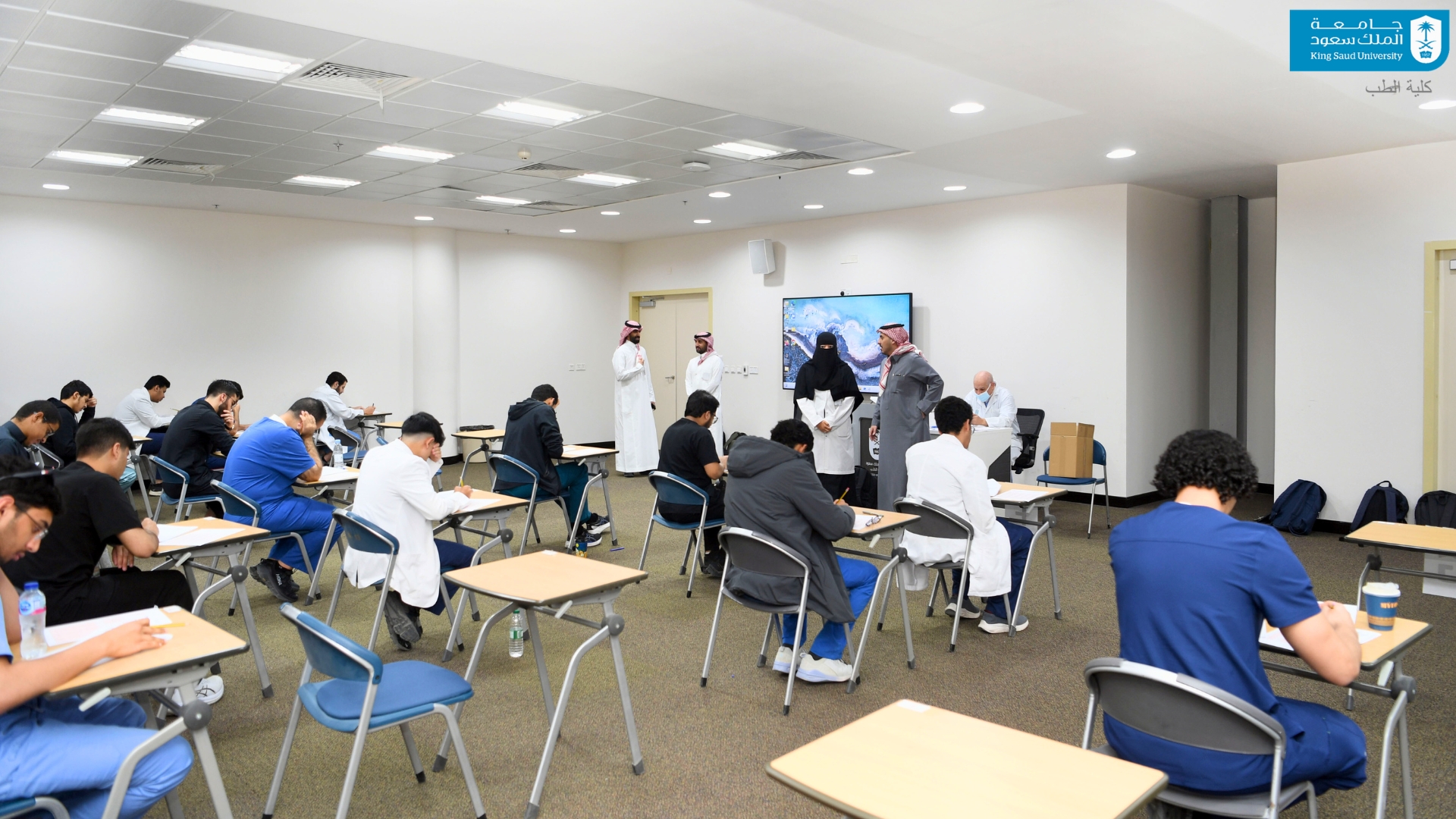 لإعداد طلاب وطالبات كلية الطب وتأهيلهم للاختبارات الوطنية المستقبلية؛ وقفتْ وكيلة الكلية للشؤون الأكاديمية الأستاذ الدكتور منى محمد سليمان على جاهزية القاعات المخصصة للإختبار التحصيلي الثامن عشر18th Progress Test الذي يشارك فيه طلاب وطالبات كلية الطب من السنة الأولى حتى السنة الخامسة اليوم الأربعاء 11 فبراير 2026م في رحاب كلية الطب وتنظمه جامعة القصيم لطلبة كليات الطب على مستوى المملكة. بهدف تمكين الطلبة من الاستعداد للتحديات العلمية وتحقيق أفضل أداء ممكن، والاطلاع على نتائجهم وتحديد نقاط القوة والضعف، ومقارنة الأداء على المستويين المحلي والإقليمي، والعمل على تحسين النتائج من خلال الممارسة والمتابعة المستمرة. ويُعد الاختبار التقدمي اختبارًا شاملاً يقيس المعرفة الأساسية والسريرية لدى الطلبة في مختلف التخصصات الطبية، بما يتيح لكل طالب متابعة تطوره الأكاديمي وتقييم مستواه العلمي بصورة دورية ومنهجية.