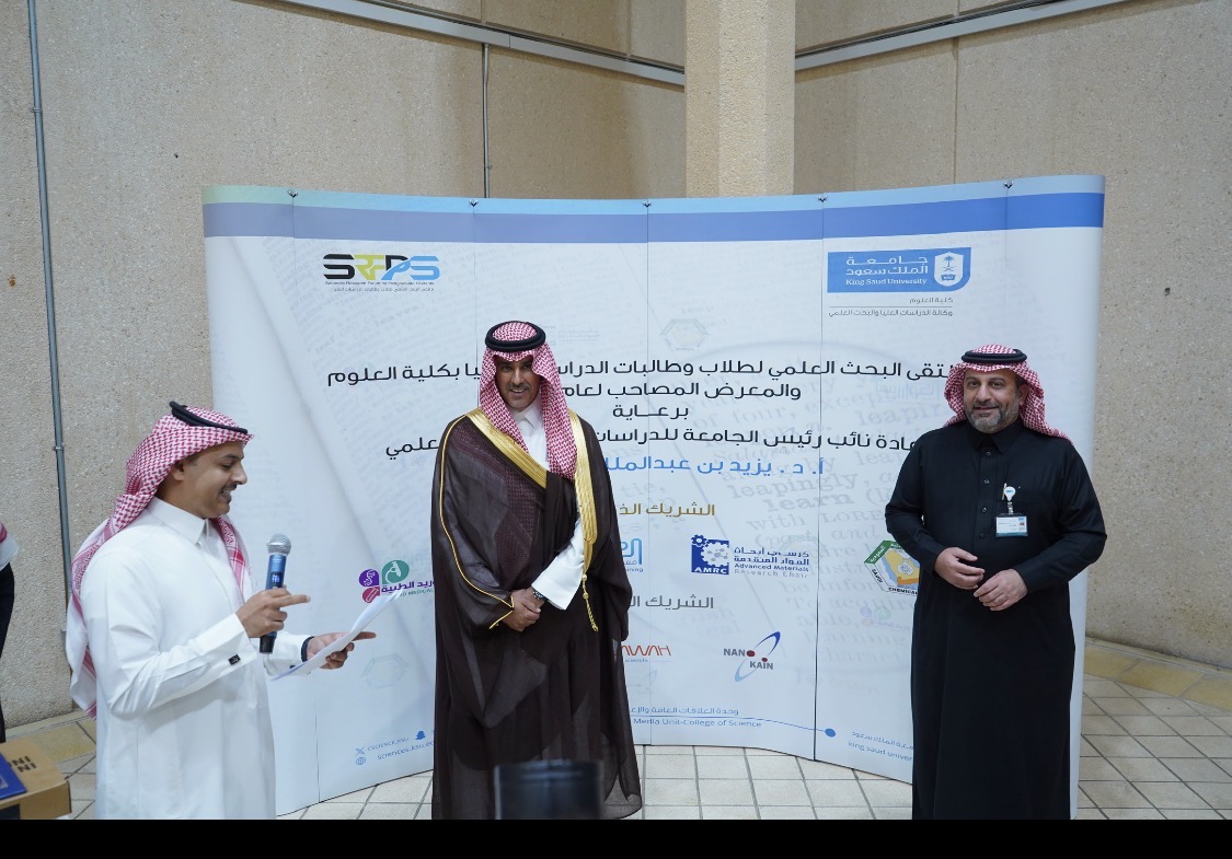 أقامت كلية العلوم بجامعة الملك سعود ملتقى البحث العلمي لطلاب وطالبات الدراسات العليا لعام 2026م، والمعرض المصاحب له، تحت رعاية سعادة نائب رئيس الجامعة للدراسات العليا والبحث العلمي، وذلك في إطار دعم جامعة الملك سعود لمسيرة البحث العلمي وتعزيز ثقافة الابتكار.
