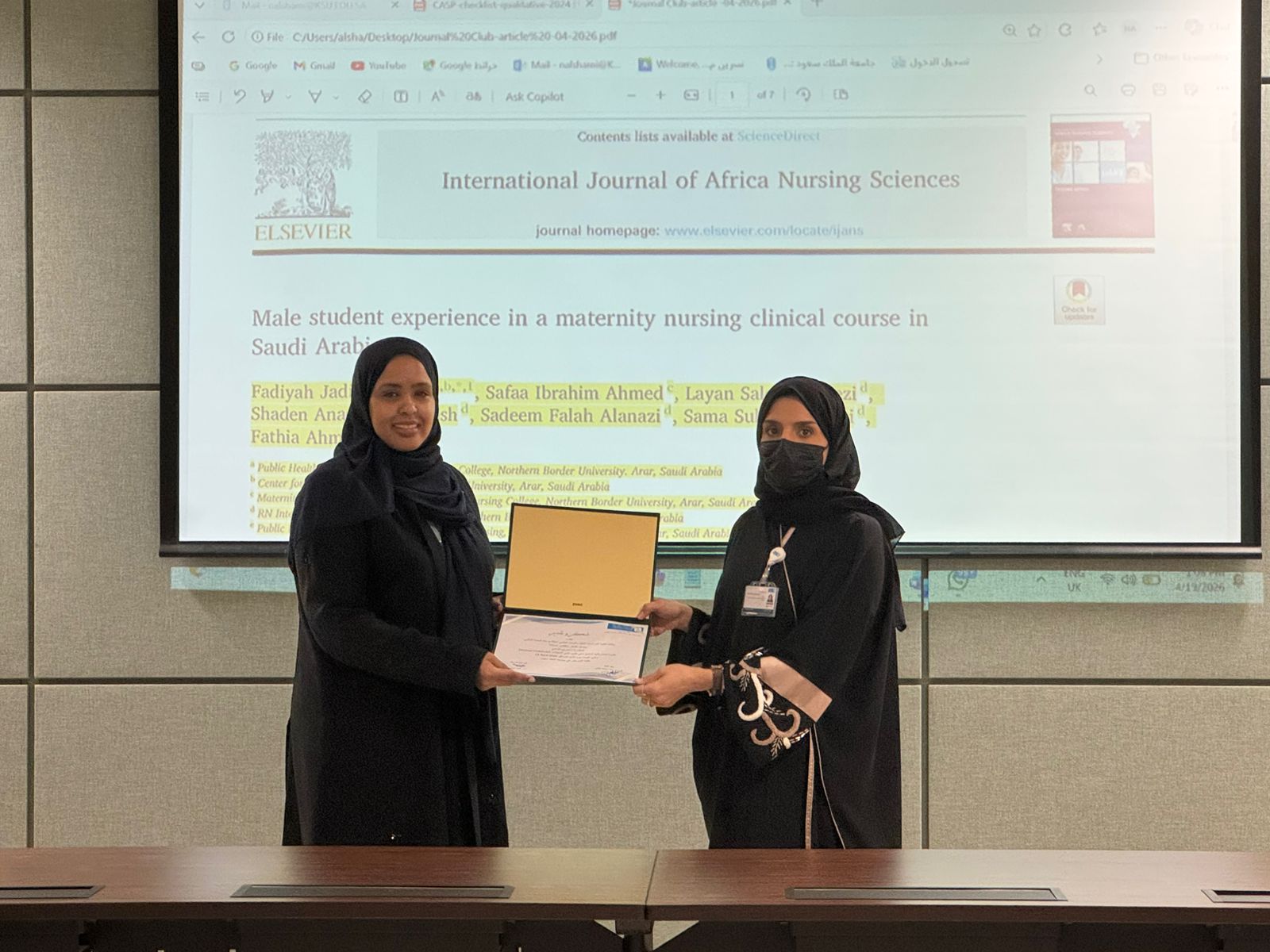 نظّمت وكالة الدراسات العليا والبحث العلمي بكلية التمريض، ممثلةً بوحدة البحث العلمي، الجلسة السادسة من النادي العلمي البحثي (Journal Club)، بالتعاون مع قسم تمريض صحة الأمومة والطفولة، وذلك يوم الأحد 2/11/1447هـ الموافق 19 أبريل 2026م، في إطار جهود الكلية لتعزيز الحراك البحثي وتنمية القدرات الأكاديمية لمنسوبيها.