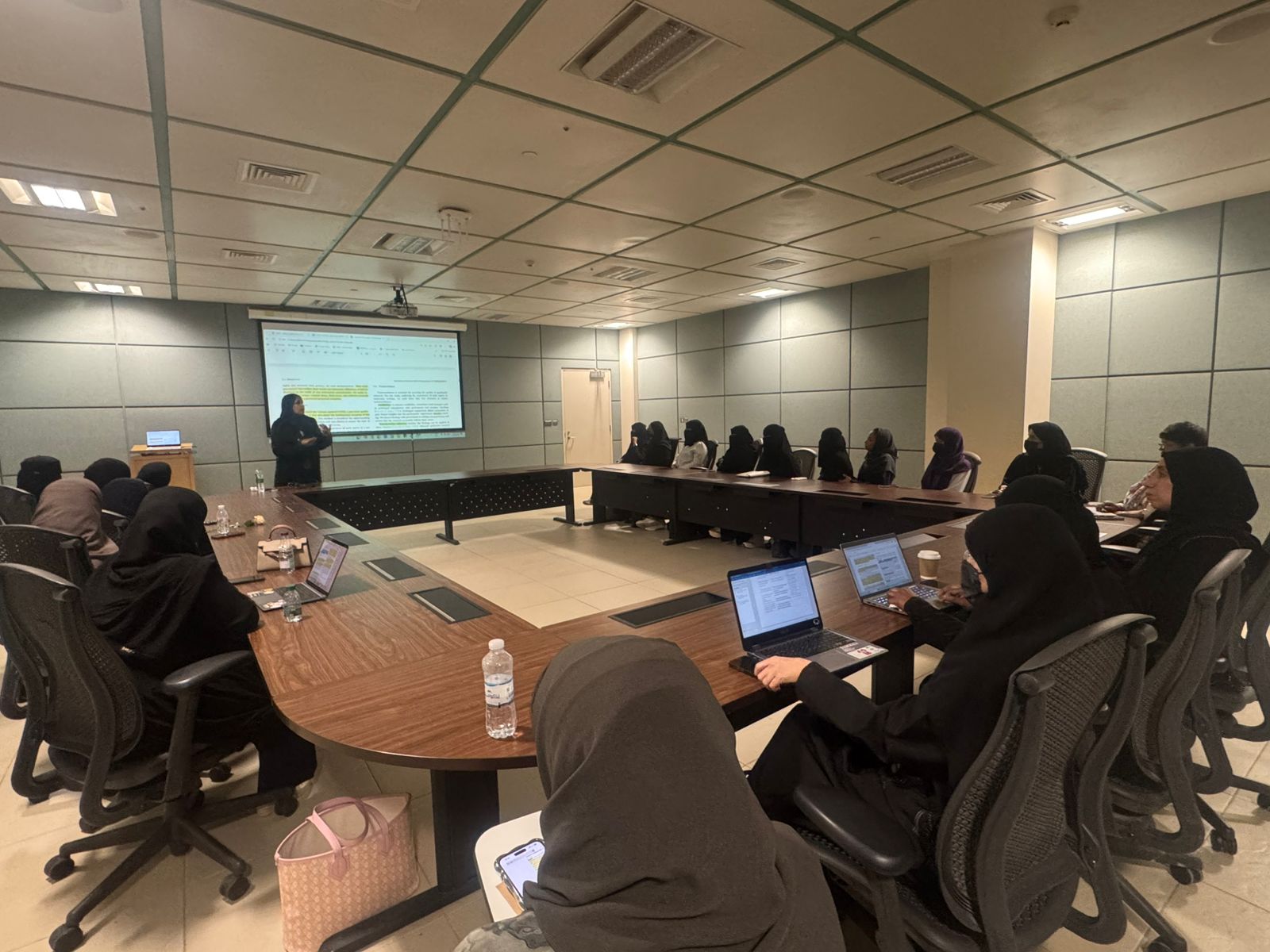 وأدارت الجلسة سعادة الدكتورة نسرين الشامي، عضو هيئة التدريس بالكلية، حيث شهدت مناقشة علمية متعمقة وتحليلًا نقديًا لإحدى الأوراق البحثية الحديثة، بما أسهم في إثراء الحوار العلمي وتنمية مهارات التفكير البحثي لدى المشاركين، إلى جانب تعزيز قدرتهم على تقييم الدراسات وفق منهجيات علمية رصينة.