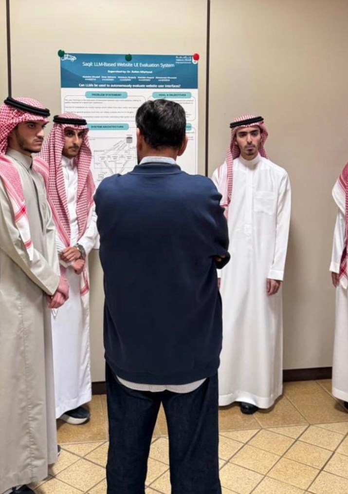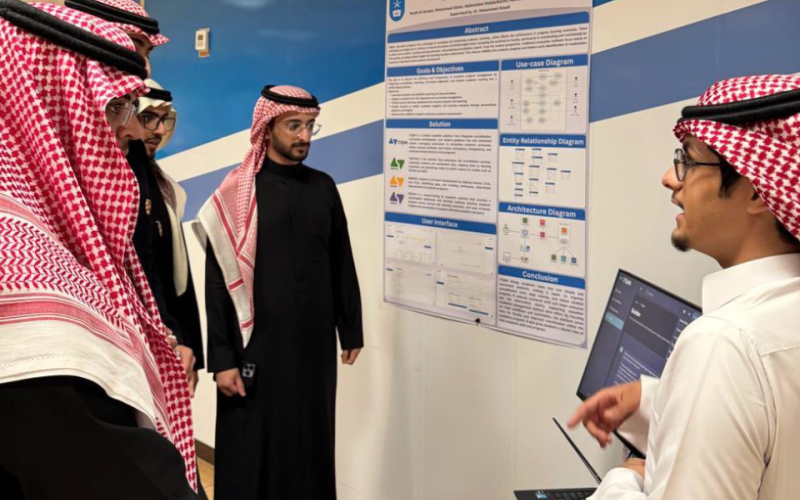The exhibition began with a tour by His Excellency Dr. Abdulmajeed Al-Amir, Dean of the College of Computer and Information Sciences, during which students showcased their outstanding technical projects.