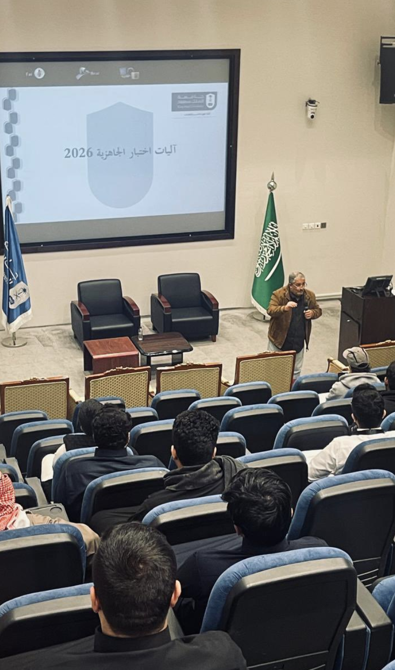 An introductory meeting was held for His Excellency the Dean of the College of Computer and Information Sciences, Dr. Abdulmajeed Al-Amir, for the male and female students nominated for the 2026 readiness test, under the supervision of the Education and Training Evaluation Commission.