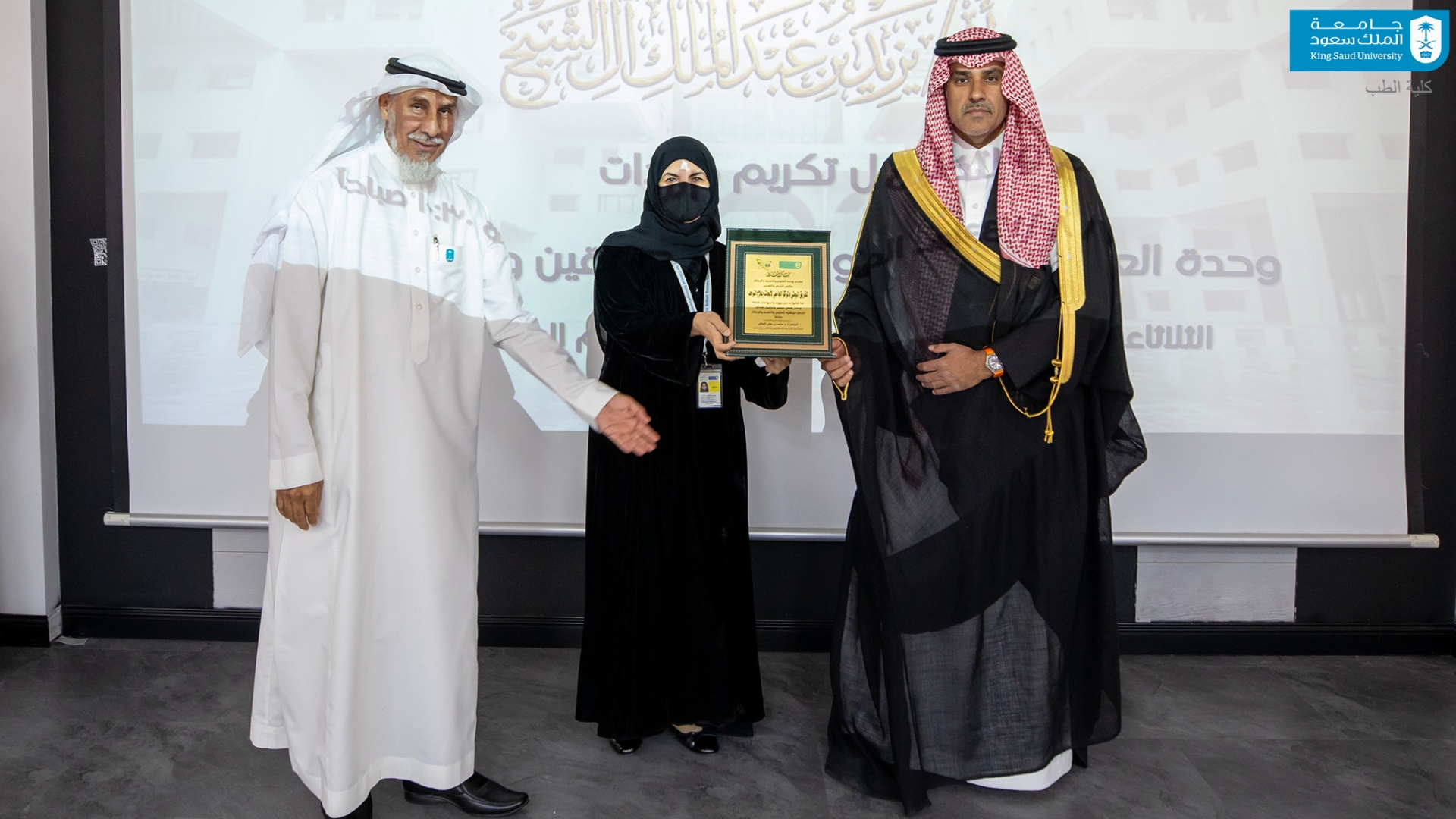 The Director of the Obesity Research Center and the Diabetes Research Center, Professor Dr. Asim bin Abdulaziz Al-Fadda, received two commemorative shields in appreciation of the research efforts led by the two centers in the fields of obesity and diabetes and their related health challenges. The Sleep Medicine Research Center was also honored, with the shield received by Professor Dr. Ahmed bin Salem Bahammam, Director of the Sleep Medicine Research Center, in recognition of the Center’s pioneering research contributions in the field of sleep medicine and its role in advancing scientific knowledge related to sleep disorders. The shield of the Liver Research Center was received on behalf of the Director of the Liver Research Center, Professor Dr. Khalid bin Aydah Al-Sawat, by Dr. Amani Al-Saadoun, in recognition of the Center’s contributions to liver research. The shield of the Autism Research and Treatment Center was received by Professor Dr. Laila bint Youssef Al-Ayadhi, in recognition of the Center’s distinguished research output in the field of autism treatment research.