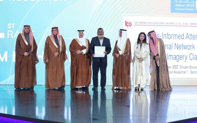 In a distinguished research achievement, His Excellency the Minister of Health, Dr. Fahad bin Abdulrahman Al-Jalajel, honored Prof. Ghulam Muhammad, Professor in the Department of Computer Engineering at the College of Computer and Information Sciences, for winning first place in the Medical Research Track of the Dr. Soliman Fakeeh Award for Medical Research, Innovation, Health Education, and Medical Education in its fourth edition.