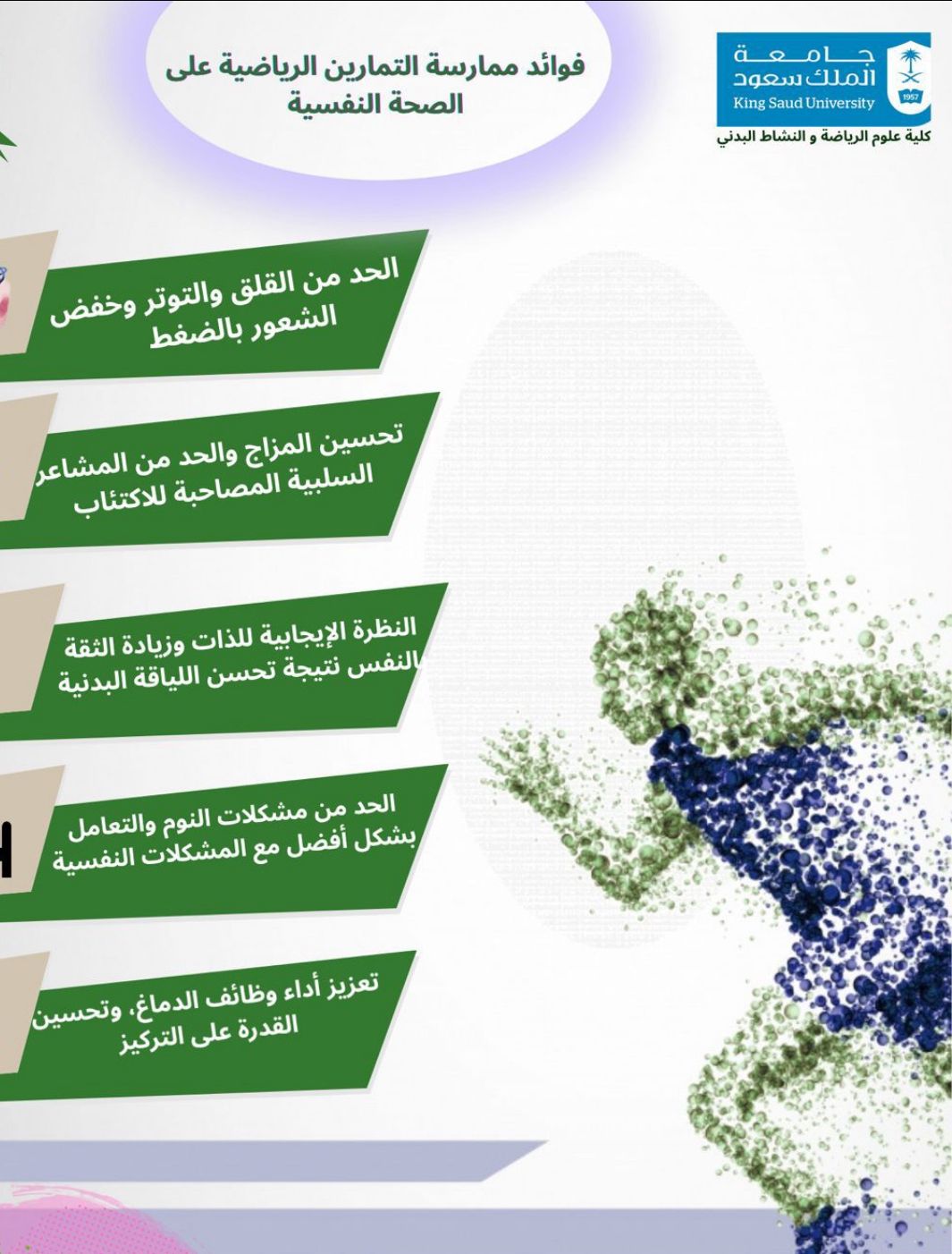 الاحتفاء باليوم العالمي للصحة النفسية / 9 أكتوبر 2025 / ضمن فعاليات الاحتفاء باليوم العالمي للصحة النفسية، فوائد عديدة لممارسة الرياضة والنشاط البدني على الصحة العامة ،وللحفاظ على صحة نفسية سليمة،