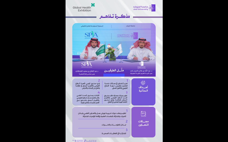 الجمعية السعودية للعلاج الطبيعي توقّع مذكرة تفاهم مع جامعة الجوف